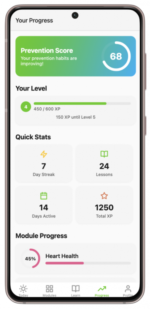 Monitor your prevention score and years of healthy life saved over time. Only keep doing what works.